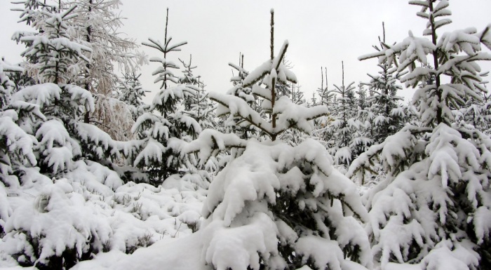 Ośnieżone choinki w Beskidach przypominają o świętach