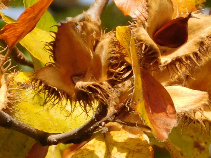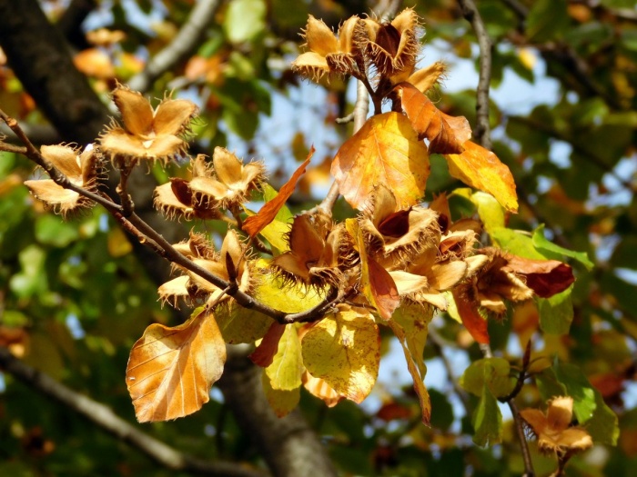 Prezentowane na zdjeciach nasiona (orzeszki) buka to bukwy. Są bardzo smaczne. Zawierają alkaloid fagina, który może nas nieco oszołomić. Oszołomi nas także uroda jesiennych lasów. Trzeba się spieszyć z oglądaniem, bo to nietrwałe piękno. Byle wietrzyk i już nic na drzewach nie będzie.