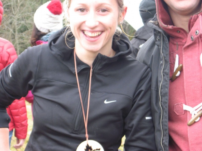 Radość z ukończenia biegu i z niezwykłego medalu. No i liczny klub kibica.