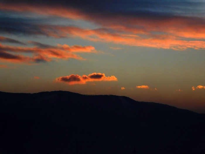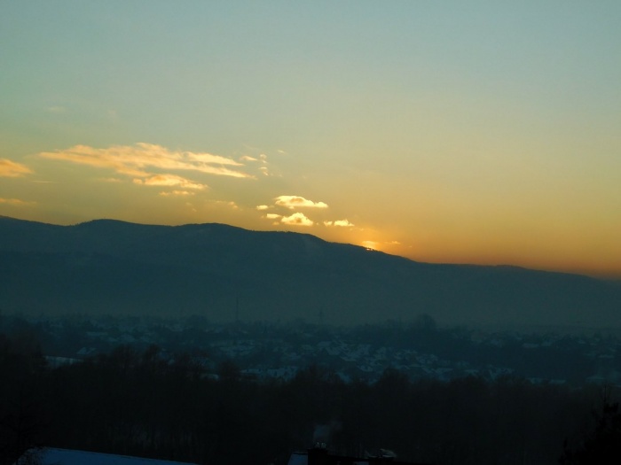 Zimowy zachód słońca nad Beskidami.