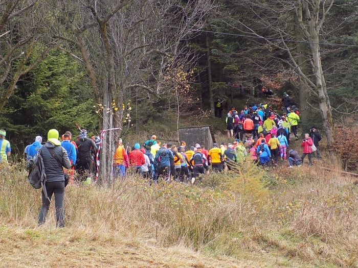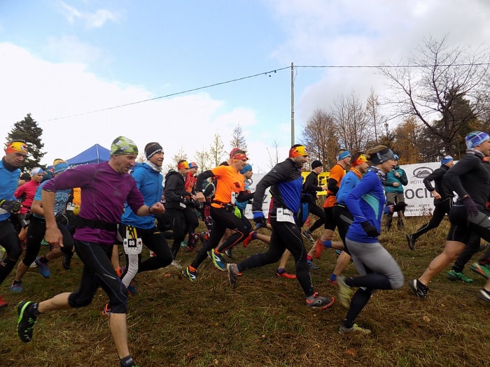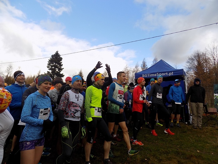 W listopadowe, chłodne, sobotnie przedpołudnie (11.listopada) kolorowy tłum biegaczek i biegaczy ruszył z Przełęczy Kocierskiej na Jawornicę i Potrójną, by po 15 kilometrach dobiec na metę usytuowaną też na Kocierzu. 15 kilometrów przez górskie wertepy kryjące pod grubą warstwą bukowych liści gałęzie, kamienie i inne przeszkody. Strome podbiegi i fragmenty trasy na łeb na szyję prowadzące w dół. Ten bieg po Beskidzie Małym, który powoli staje się kultowy, zgromadził doborową stawkę. Biegacz w czerwonym to Tomasz Gawroński z Jędrzejowa - drugi na mecie.