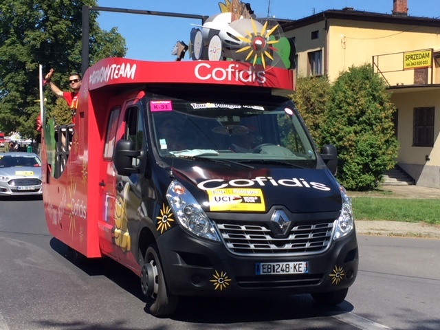 Czekamy, czekamy i czekamy. Najpierw samochody wyścigu, policja i ... trójka kolarzy. Prowadził zawodnik z grupy Cofidis, za nim biało-czerwony, a zamykał trójkę chłopak z CCC Polkowice. Następnie długo, długo nic, i to "NIC" wynosiło kilka dobrych minut, dopiero pojawił się dość rozciągnięty peleton. Ciekawe co prowadząca trójka zrobi z tymi minutami przewagi. Przed nimi Salmopol, czyli spore wzniesienia.