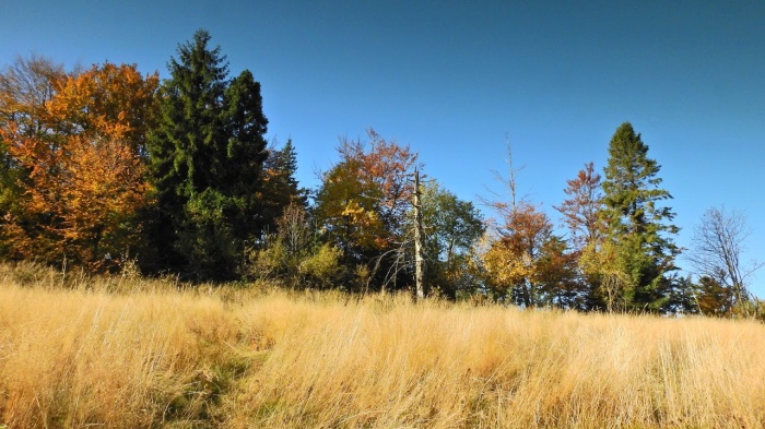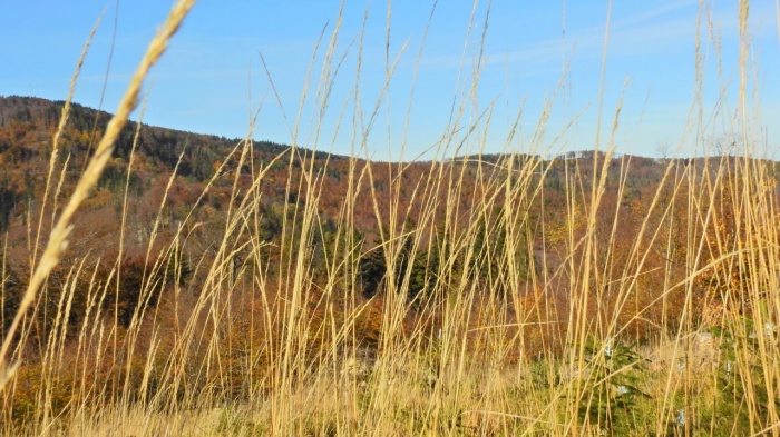 Aż chce się biegnąć złocistą ścieżką, spacerować wśród płonących buków i suchych wysokich traw, turlać się i czołgać w opadłych liściach. Po prostu ruszyć w jesienne góry i lasy póki nie opadną kolorowe liście. A to już niedługo.