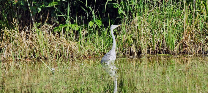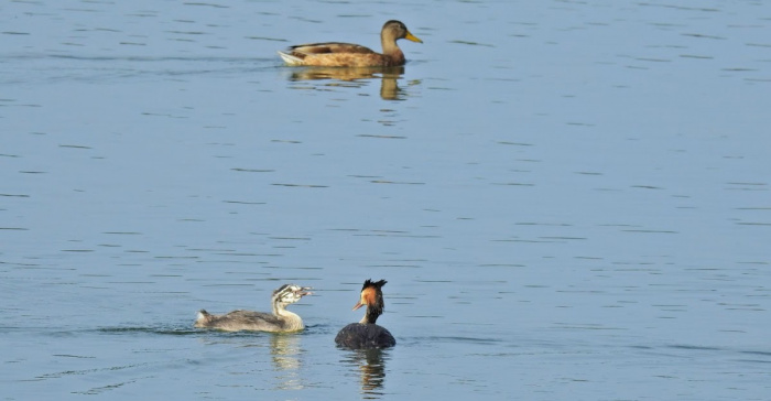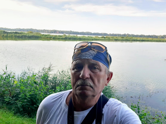 Ptaki wodne szykują się do odlotu lub do zimowania. jest ślepowron, inne czaple, perkozy i kaczki. Fotografuje Jerzy Duraj, ten pan na jednej z fotografii.